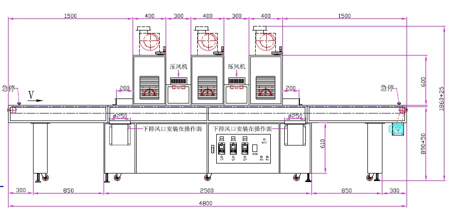 1、UV燈功率:12kw3支(UV鹵素?zé)簦?/p>