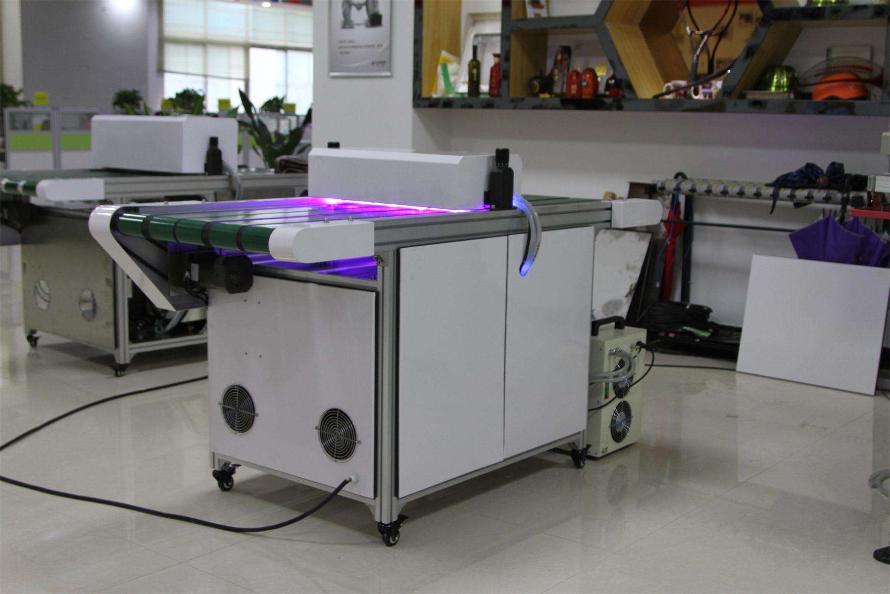 光固機提高20% 、進口耐高溫特氟龍網帶,進口電子無極調速電機,輸送速度平穩;無噪音配備速度顯示器〔行走速度一目了然〕,瞬時干燥,使承印物表面達到高硬度、高光澤、耐摩擦、耐溶劑之效果;裝配精致合理的排風系統對溫度調節,避免特殊產品變形的影響;也可使