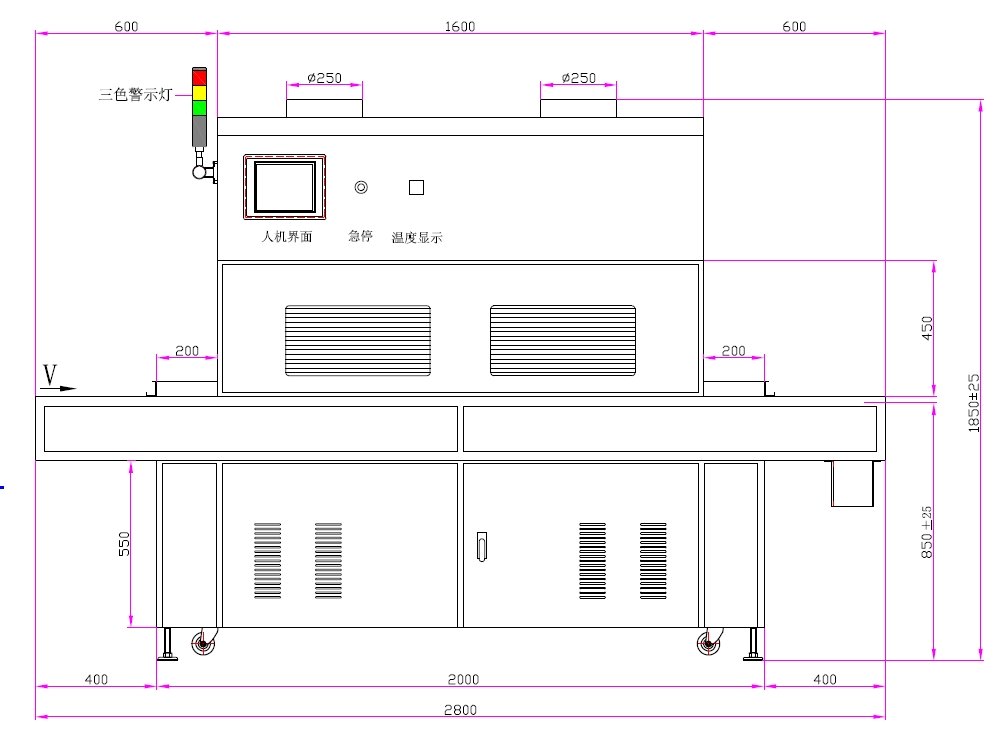 1、UV燈功率:12kw*5支(UV鹵素燈)